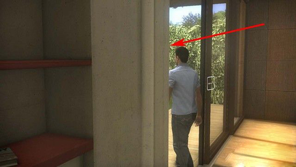 如下图箭头所指,直接从这里走就行了,不需要和旁边的门互动(旁边的门死活打不开)。