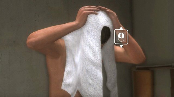 刮完胡子之后,不要出去,而是继续往卫生间走,去洗澡,全程跟着提示就行了。