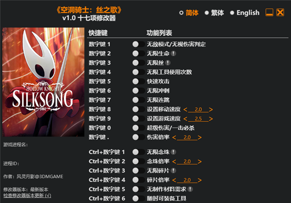 空洞骑士丝之歌十七项修改器内容
