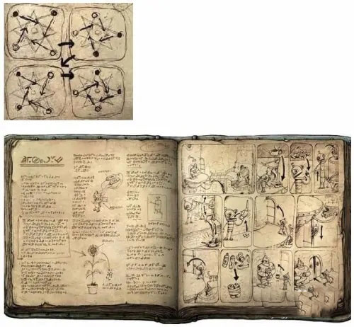 6、下去照红点开锁,门就开了,刚才提示里有提示过放大镜可以放到幻灯机上,把放大镜放到幻灯机上后出现了一幅向日葵的解说,按下幻灯机的开关的上,有提示可以在某个机器上炼油,其它的图不太清楚是什么意思,去画面右下方关掉右边的幻灯机,再换上另一个幻灯片,再打开开关,也不太看不懂什么意思,中间还夹杂着蝴蝶的红点分布图.反正不懂,出门吧。
