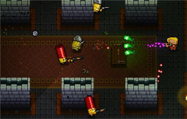 挺进地牢(Enter the Gungeon)是由Dodge Roll制作的一款射击冒险类游戏。游戏背景设定为几个末路英雄来到了由巫妖建立的枪炮地牢,传说在这里有一把能够改变过去的枪,为了能够得到这把修改过去的枪,他们挺进地牢,一路向前。然而这一条不归路上并不只有他们,不少和他们报有同样目的的人永远地留在了这里,走到地牢的最底层,他们有人选择了接受巫妖的奖励,却也有人决定向作恶多端的巫妖宣战!所以玩家需要做的也是控制角色进行地牢式的RPG探险。在每一层,玩家都会面临各式各样的敌人。而越往深走玩家要面临的困难就越多,游戏难度也就越来越大。挺进地牢游戏中玩家的生命值是有限的,为了能顺利过关,玩家需要充分利用场景中的各种要素,如引爆炸药桶,推倒桌子当做掩护等等。并且《挺进地牢》画面选用像素风格的画面,给人一种复古风的感觉。虽然本作没有大作酷炫,但是其内容丰富,玩法非常有趣,也非常耐玩!