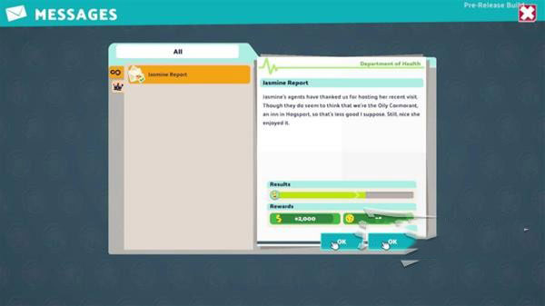 1、玩家的邮箱中有时会出现来自校外人士的检查请求,接受后,他们就会进入校园检查并给出评估结果,评估成绩越高,玩家获得的金钱和赞誉就越多。
