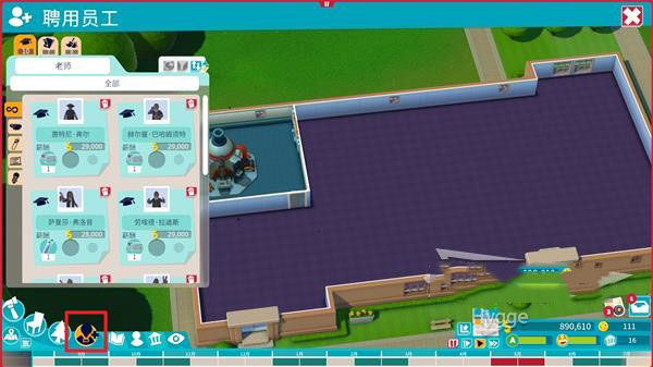 1、在拥有教室后我们必须先招聘老师才能够给学生们上课,点击界面左下角标记出的图标即可打开招聘界面。