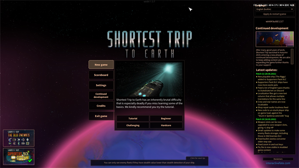 最短地球之旅是由Iceberg发布的一款Roguelike类型太空科幻背景的策略模拟游戏,游戏包含了太空探索、飞船管理和战术战争等丰富的游戏内容,你能够游戏中探索一个由程序生成的广大宇宙,你在这个太空的最终目的就是寻找您的家乡—地球,你可以驾驶您的宇宙飞船尽情的在提空翱翔,你会不断的遇见外星人的存活身影,并给你还会在太空上遇见许多跨纬度的宇宙怪兽,遇见这些宇宙怪兽时你可以用飞船来干掉它们,如果您的飞船遇见了敌对强力非常无法匹敌就需要发挥您智慧的头脑来使用战术将它们战胜,战胜他们去踏向回家之路吧!最短地球之旅这款游戏能够为玩家带来一个非常完整的太空模拟体验,飞船拥有一套非常完整的系统,并给游戏独特的手绘插画能够让你体验到不一样的感觉,游戏的难度较高,所以你需要小心的活下去,千万不要尝试死亡,因为那是重启之路,赶紧来游戏里寻找您的家乡吧!