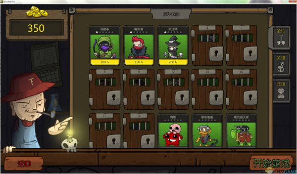 初期只能选择3个兵种,弓箭手,嘲讽者,黑法师。