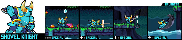 铲子掉落:铲子骑士的标志性能力是他在《以太的对手》中的《 Down Air》。通过这种攻击,他可以从上方打击对手并反弹。按住攻击按钮,将铲子放在他下面。他还可以弹起物体和弹丸!