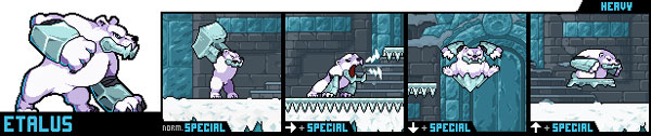 家庭冰的优势:Etalus可以使用他的Forward Special或Forward Tilt冻结他下方的地面,以便在冰面上滑动。