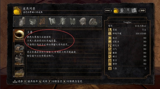 获取王器,我的建议是暂时不去火鸡场找大蛇放王器,先攒攒家底去黑森林噶了哈士奇拿戒指后去小隆德找黑暗大蛇后再放王器也不迟,而且墓地也可以先探索了,毕竟有王器了。