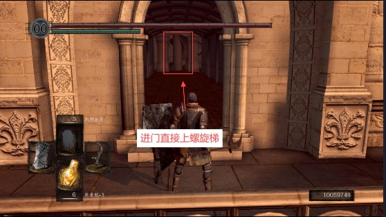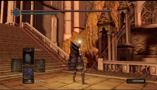 这个位置魂三玩家一定不陌生了!拾取黄铜女宝箱的地方。