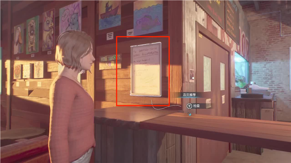 随后吧台左边有一个小告示板上面是店员推荐,查看之后可以得到第三个对话话题,集齐三个之后就可以和阿曼达对话了。
