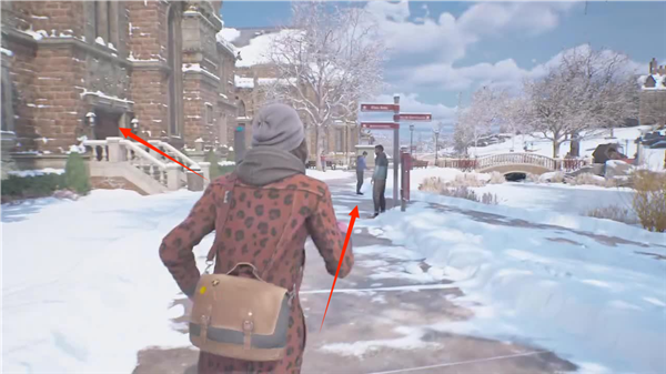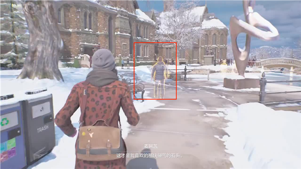 做完这些事情之后我们就可以去艺术楼找摩西了,这里只需要向前直走进入艺术楼再直走就可以看见摩西。之后我们来到外面的长凳,在这里再次安慰摩西。