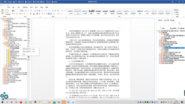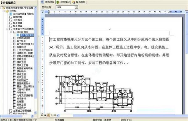 5、下边显示的就是一个“土建标书”的打开内容,左边是标书的目录,点击以后就可以查看具体的内容了,并且可以配上图片提示