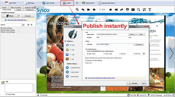 Flip PDF Pro为您提供多种输出格式,包括html,exe,zip,Mac app,移动版本和刻录到CD。您可以将活动簿发布到在线主机上,也可以与在线读者共享。