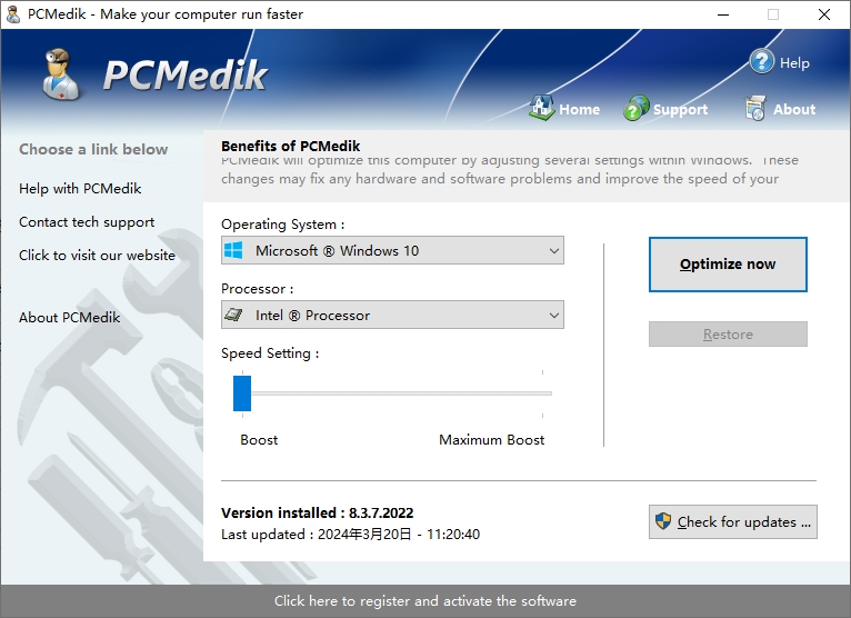 4、PCMedik将通过对计算机运行方式进行永久性系统范围的Windows更改,立即提高计算机硬件的速度。