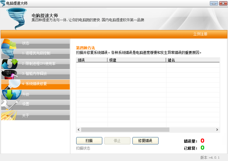 系统存在错误,也是电脑变慢的原因之一,通过修复系统错误、清理系统注册表冗长数据,也可在一定程度上提升给电脑提速