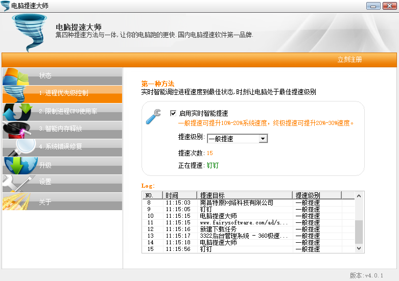 1、方法一:进程优先级控制,实时智能调控进程速度到最佳状态,时刻让电脑处于最佳提速级别