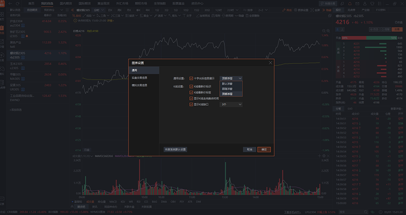 PC端新增自定义周期功能,支持对国内期货周期进行自定义设置。您可在期货详情页的周期选项中单击“更多”,在下拉列表中点击“自定义”按钮进入自定义周期设置弹窗设置您需要的K线周期。