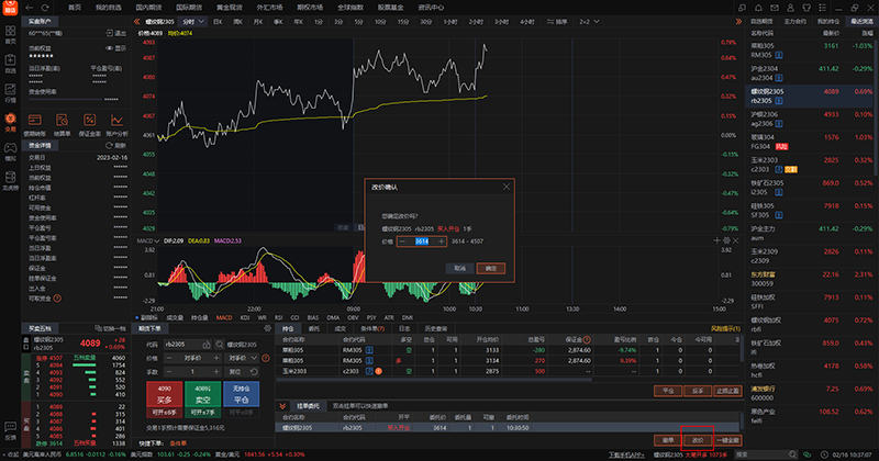 您在挂单委托列表选中需要改价的合约后,单击右下角的“改价”按钮将会出现改价确认弹窗,在该弹窗中进行价格修改并单击“确定”按钮即可完成改价操作。实盘交易、模拟交易均支持该功能。