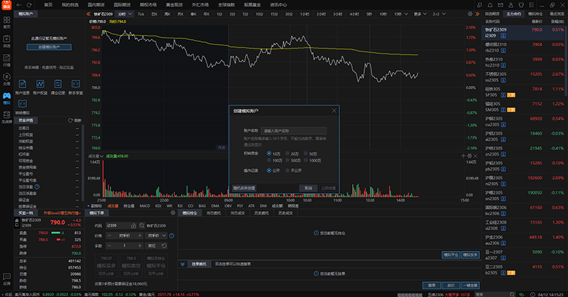 PC端现已支持自定义创建模拟账户,提供多种初始资金选项供您选择,最多可达1000万。若您未创建过模拟账户,可在模拟首页点击“创建模拟账户”按钮进行创建;若您已有模拟账户、需要新增,可点击模拟账户右侧“切换”按钮,并在出现的下拉列表中点击“创建模拟账户”进行创建。