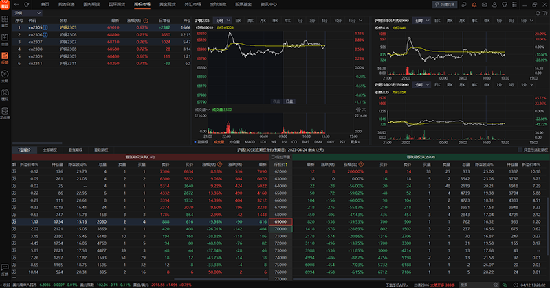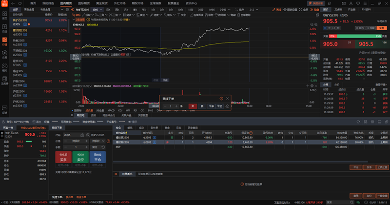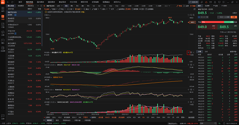PC端行情图现已支持同时查看5个副图,您可在期货详情页、实盘交易界面、模拟交易界面的副图右上角单击“加号”按钮增加副图数量。