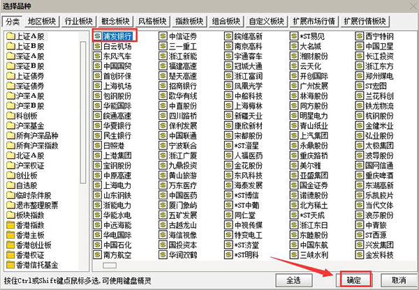 4、我们以浦发银行为例,找到之后,点击右下角的确定按钮即可。
