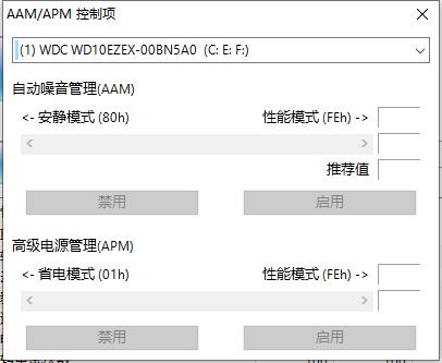 6、使用crystaldiskinfo合理设置自动噪音管理,AAM和高级电源管理APM可以让硬盘既保证性能又减少消耗。