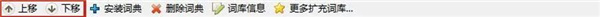 5、安装完全部词库后,可以在词库管理器页面,单击选中任一词库,然后点击上方工具栏内的”上移“”下移“按钮,调整此词库在查询单词释义时出现的先后位置。