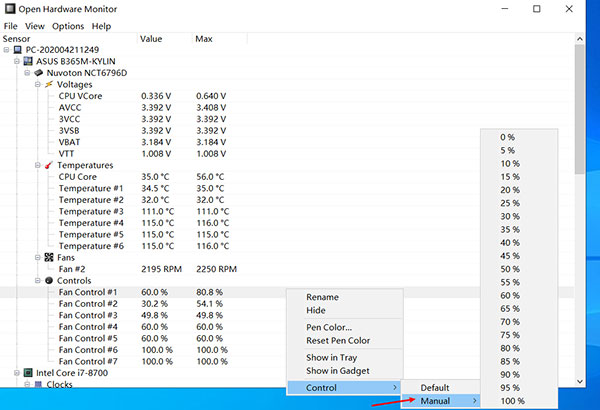 Open Hardware Monitor调节风扇转速教程