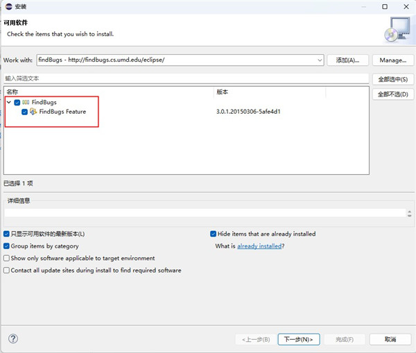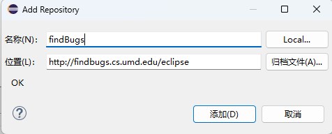 2.点击“Add”,然后在弹出框“Name”输入“findBugs”,“Location”输入“http://findbugs.cs.umd.edu/eclipse”,点击“OK”。