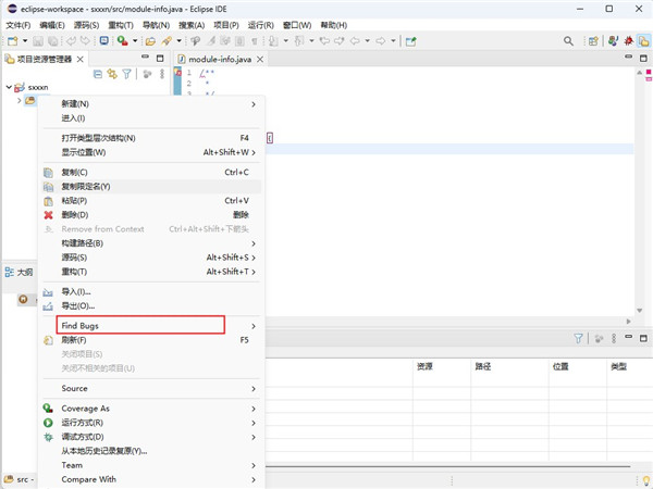 此时findbugs会遍历指定的包或者类,进行分析,找出代码bug,然后集中显示在 find bugs 的bugs explorer 中,下面我们添加bugs explorer。