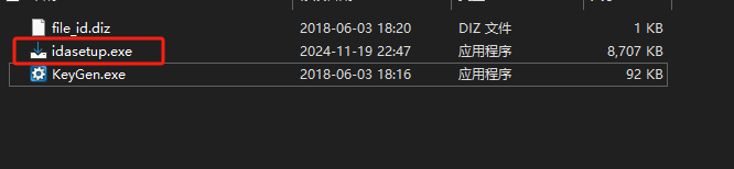 1、将下载好的文件全部解压之后,双击“idasetup.exe”运行