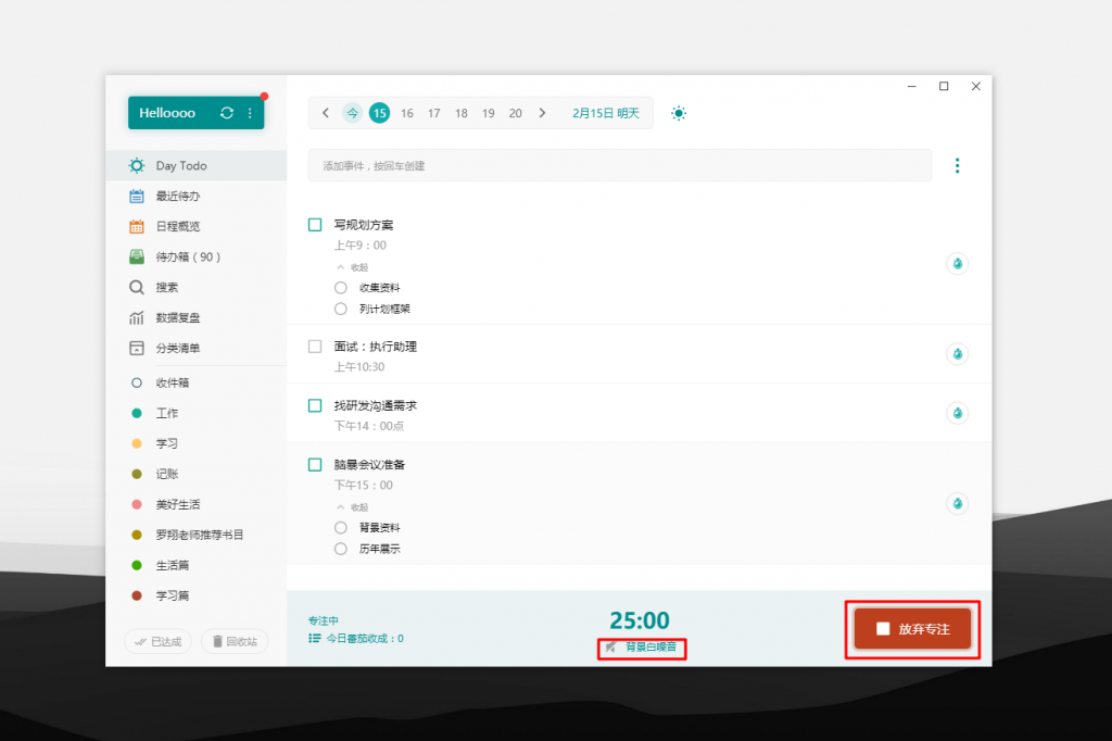 优秀的GTD(Getting Things Done)应用,除了清单-分级-时间管理-专注执行,还需要提供强大的复盘能力。这是市面上所有同类产品欠缺的。