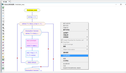 4、在这里您可以为流程图添加文字注释,点击相应的框可以看到流程图与源代码的对应关系