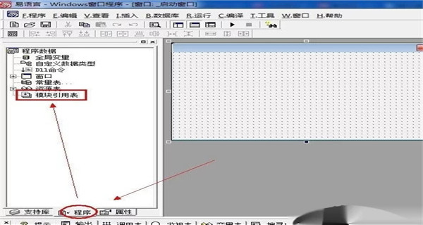 1、打开e语言5.9,创建一个"windows窗口程序",再左侧中间的选项卡,看图。