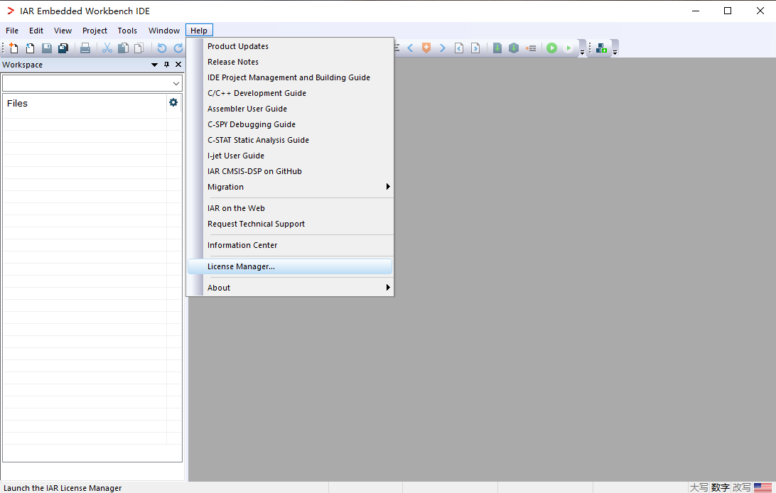 10、接着运行IAR Embedded Workbench for ARM软件,依次点击【Hepl】、【License Manager】。