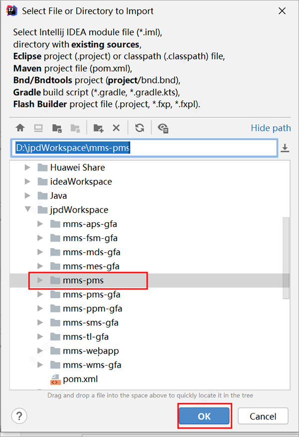 6、选中需要导入的本地项目,点击OK。