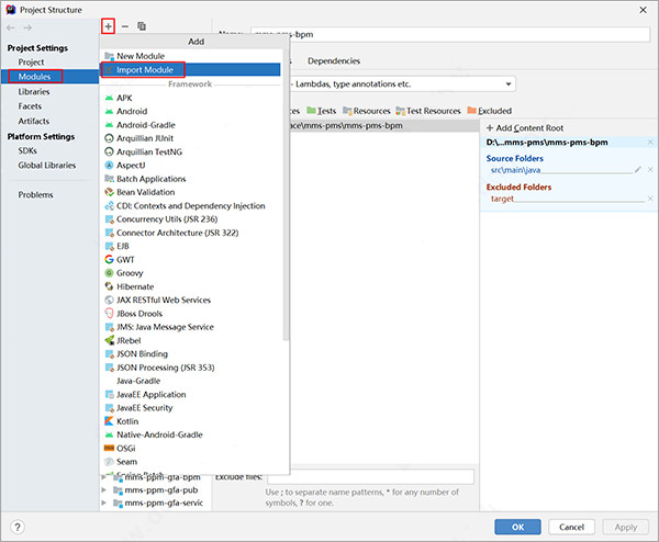 新的 Multi-Module Project(多模块项目)节点让您可以从头开始创建具有复杂结构的项目。 创建项目后,Project Structure(项目结构)对话框将打开,您可以添加各种模块。