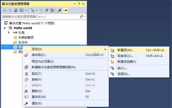 5、右键“源文件”,再按添加——新建项。