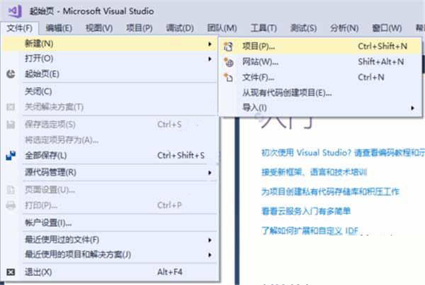 2、左上角按文件——新建——项目,或按ctrl+shift+n。