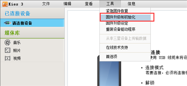 二、samsung kies 3固件升级和初始化的操作方法