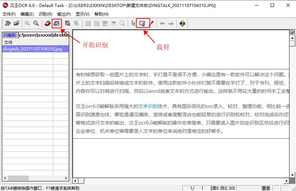 5、如果你只需要图片中的一部分,可以用上方的“剪刀”进行修剪,或者点击“版面分析”进行选区,然后点击“自动识别”。
