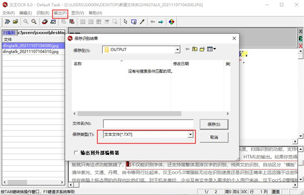 识别结果文件可以有*.RTF、*.TXT、*.PDF 和*.HTML 四种存储格式。