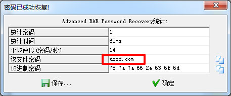 6、成功破解后即可看到改文件的密码啦,注意越复杂的密码耗时越长,只有足够了解密码信息,才能快速进行破解。