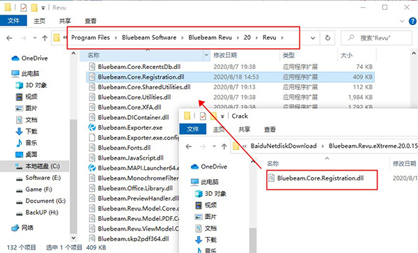 5、将Bluebeam.Core.Registration.dll复制到以下三个目录中,点击替换目标中的文件;