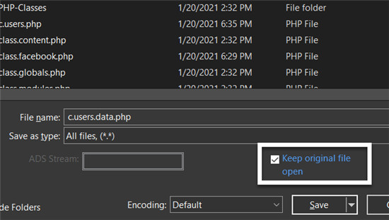 有时候,我们想用新名称保存文件,而使原始文件保持打开状态。版本21旨在提供便利,并通过“另存为”对话框中的新“保持原始文件打开”来实现此目的。我们是否提到过我们也添加了对FTP另存为的支持