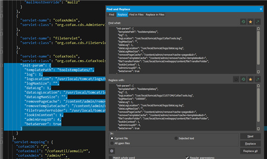 寻找大串吗?现在,您已经有了一个大的查找/替换框来容纳它!根据普遍的需求,我们对这些对话框进行了重新设置,以使“查找”,“替换”,“在文件中查找”和“在文件中替换”对话框的宽度和高度都可调整。自定义大小会在每次会话之间记住