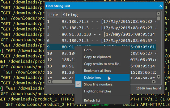 如果您曾经想过,“如何摆脱该文件中包含_____的行?” 那么您会喜欢“查找字符串列表”中的这一小巧但非常有用的功能!右键单击列表,然后选择“删除行”以立即将其从文件中删除。就这么简单!
