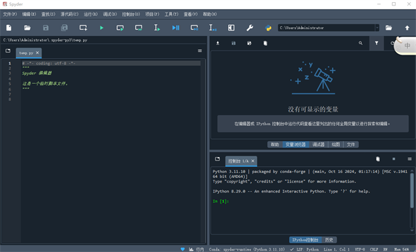 Spyder集成了IPython控制台,为用户提供了更强大的交互式计算体验: