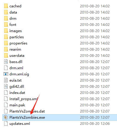 2、解压后,找到文件夹中的“PlantsVsZombies.exe”文件即可打开游戏,无需安装;