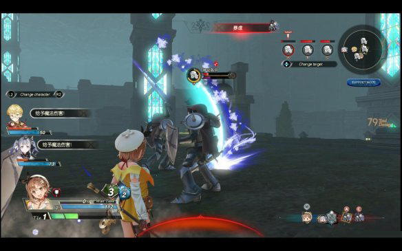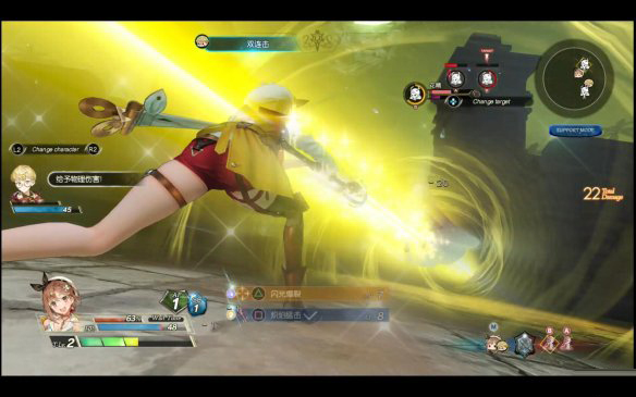 相较于前作这次的《莱莎2》还增加了即时防御系统,看准时机完美防御还能为角色恢复AP。但由于视角和出招机制的问题,这个防御系统真实操作起来蛮鸡肋的。当一场战斗有多个敌人时,由于无法手动调整视角玩家在大多时间内只能看到一个敌人,这样的设定让玩家受到视角外的敌人攻击时很难躲避。如果你在攻击时敌人的行动条恰好涨满,那么敌人将会出招打断你的攻击并且防御不能,这个机制在面对BOSS时特别明显。